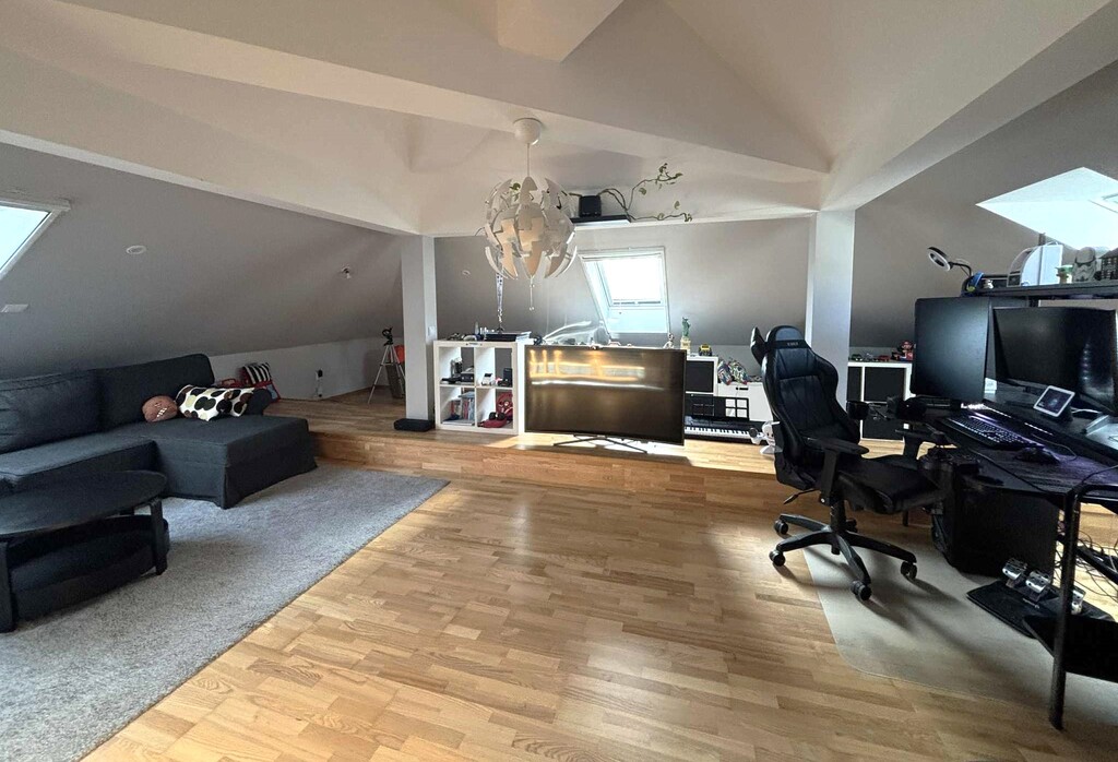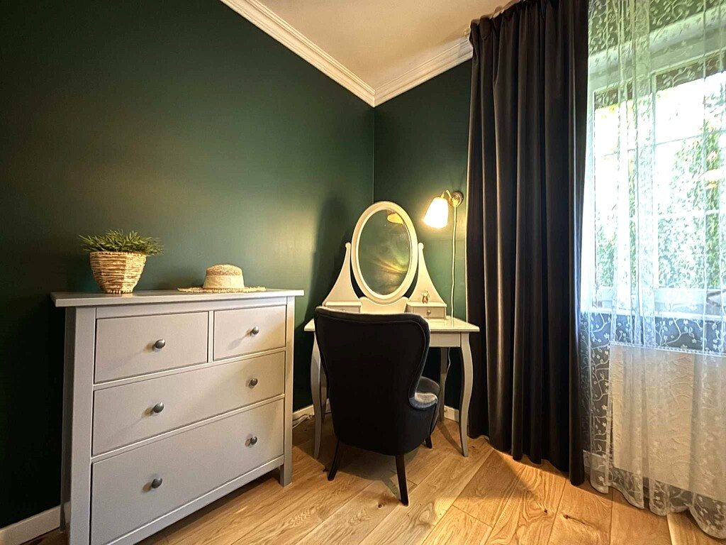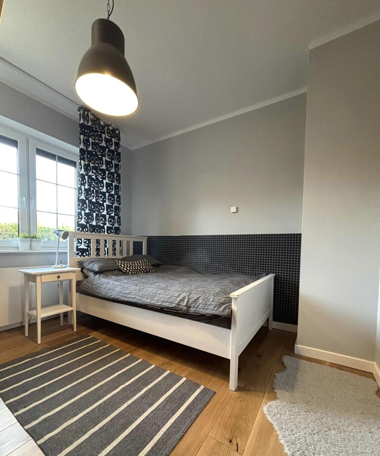 Z mniejszej sypialni wejście na poddasze, gdzie znajduje się trzeci pokój z garderobą (powierzchnia liczona po podłodze 70 m2 )- to miejsce, doskonale sprawdzi się jako gabinet czy pracownia. W dalszej części poddasza strych do przechowywania rzadziej używanych rzeczy.