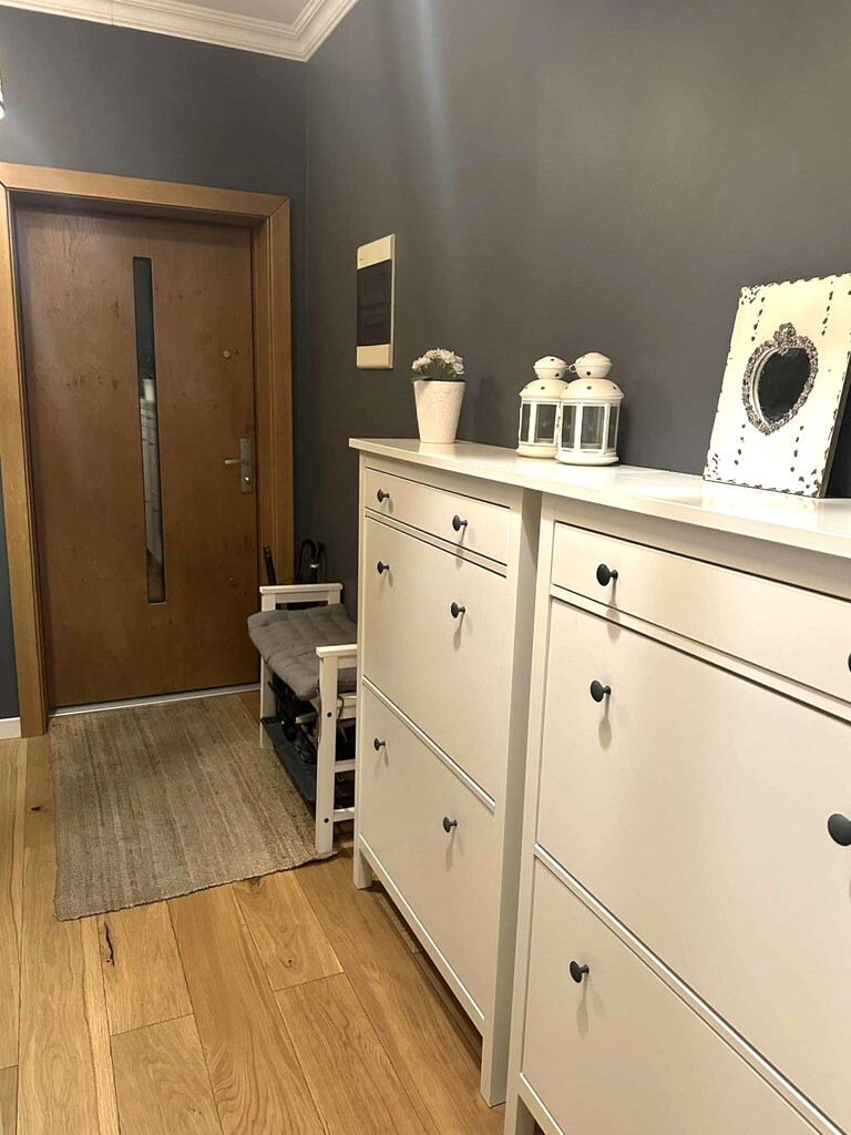 Właściciel za dodatkową opłatą może pozostawić wszystkie meble widoczne na zdjęciach, oferta godna uwagi, gdyż każdy z elementów jest w bardzo dobrym stanie i wysokiej jakości (meble w salonie drewniane), a dobrane kolory i materiały tworzą spójną całość