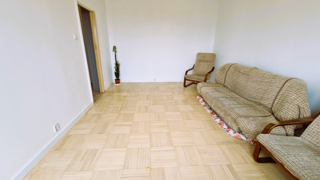 - Podłoga drewniana, świeżo wycyklinowana.