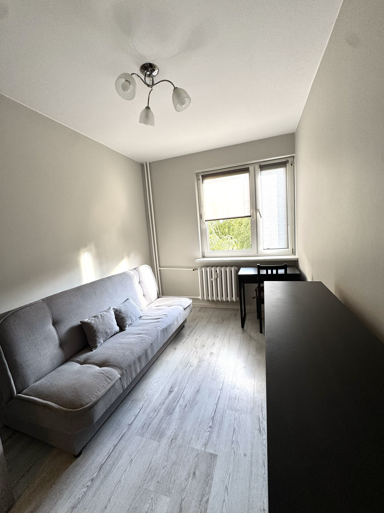 - Drugi pokój - również wyposażony w rozkładaną kanapę i komodę. Może pełnić funkcję sypialni, pokoju gościnnego lub gabinetu – w zależności od potrzeb najemcy.