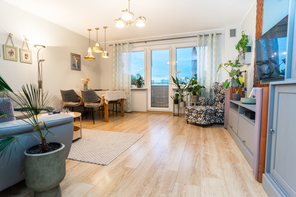 - przestronny, salon o pow. 22,3 m², z balkonem