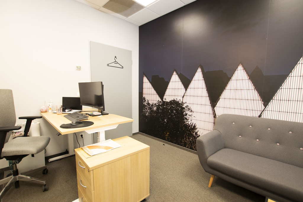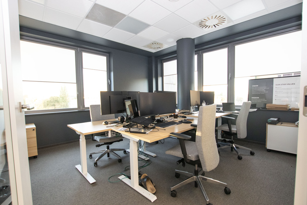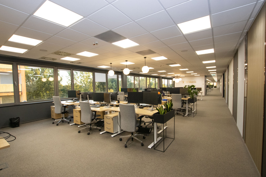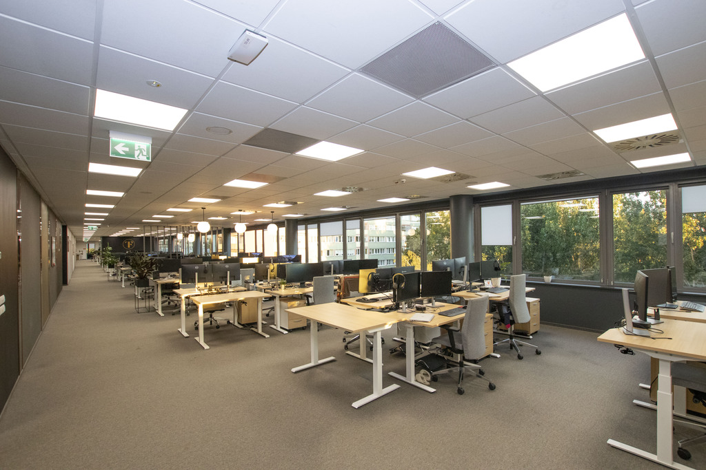 Układ powierzchni to funkcjonalny open space z możliwością wydzielenia gabinetów, sal konferencyjnych i stref relaksu. Duże przeszklenia zapewniają dostęp naturalnego światła oraz atrakcyjny widok na panoramę miasta. Standard wykończenia