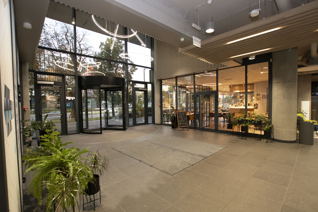 Nowoczesne lobby z recepcją i kontrolą dostępu,