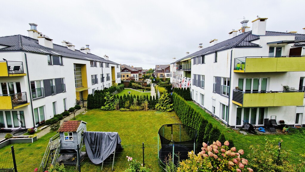 Sam budynek znajduje się w głębi osiedla, dzięki czemu nie słychać przejeżdżających samochodów.