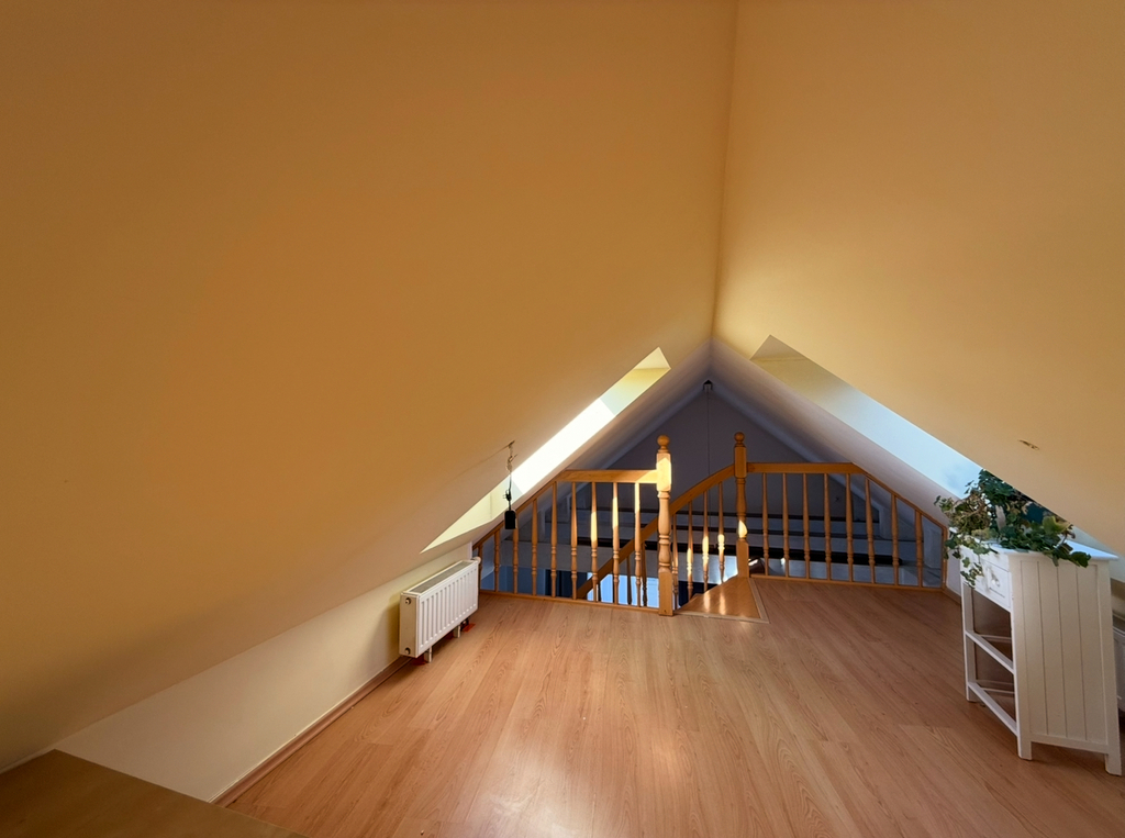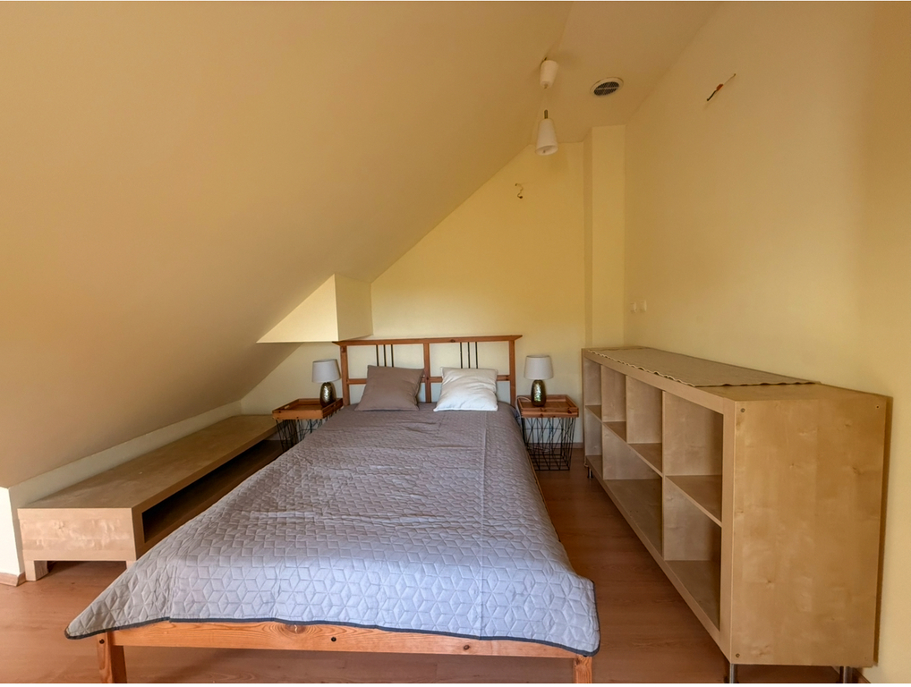 - przytulna sypialnia na antresoli (duże skosy)
