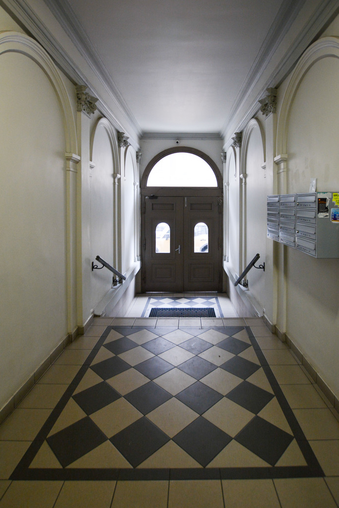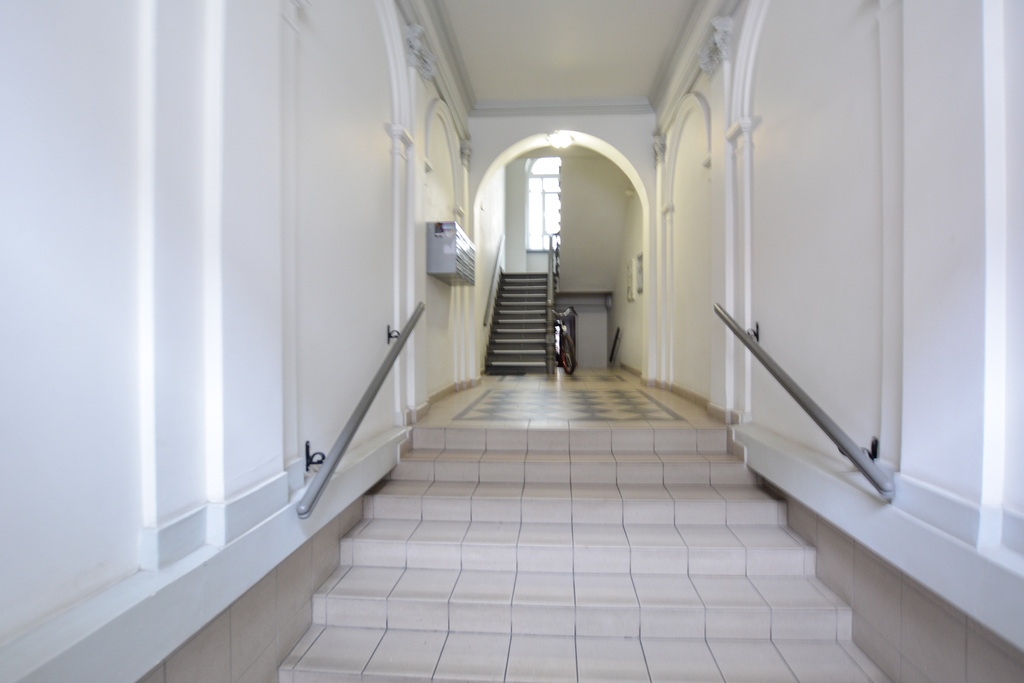 Elegancka klatka schodowa, odrestaurowana z pieczołowitym zachowaniem oryginalnych detali architektonicznych - sztukateria, tralki, brama wejściowa. Tworzy to unikalny klimat przedwojennego mieszkania.