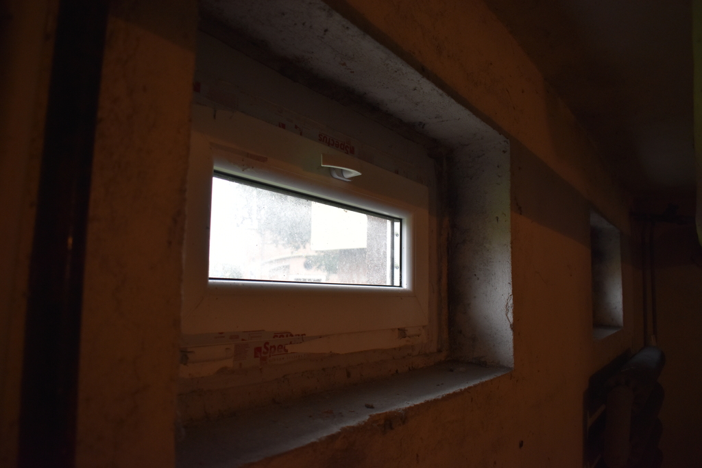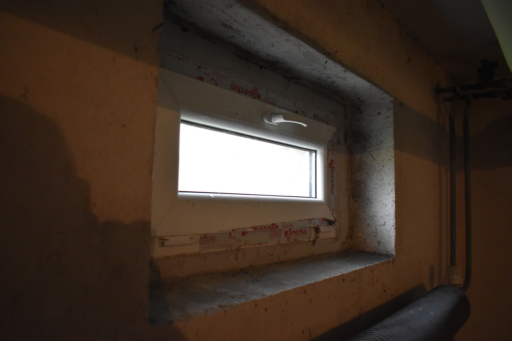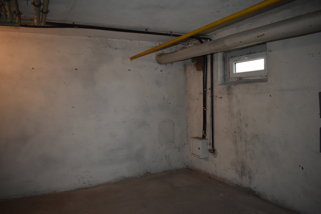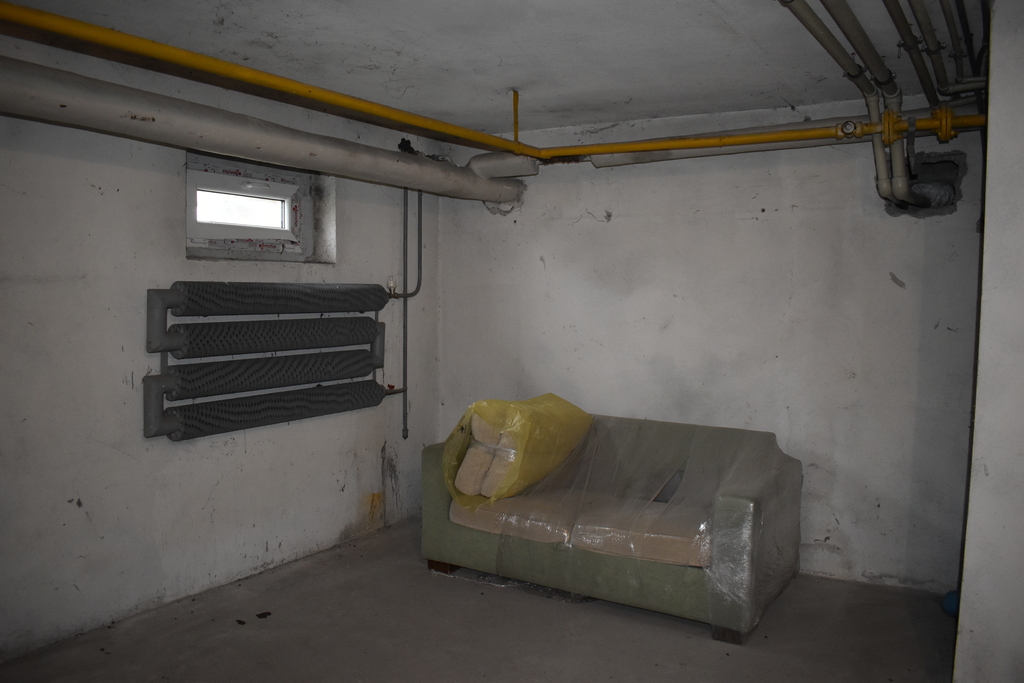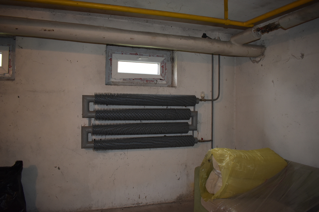 W piwnicy mamy dwa plastikowe okna oraz duży konwektorowy grzejnik żebrowy. Dzięki temu, że mamy doprowadzone media (wodę, prąd i gaz), istnieje możliwość przekształcenia pomieszczenia na lokal i korzystania z niego jako lokalu biurowego.