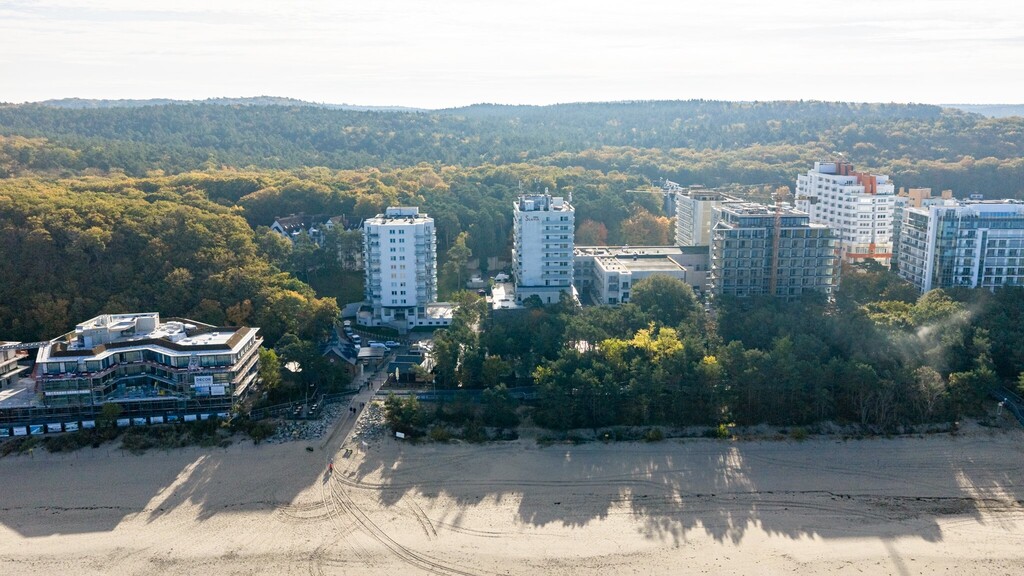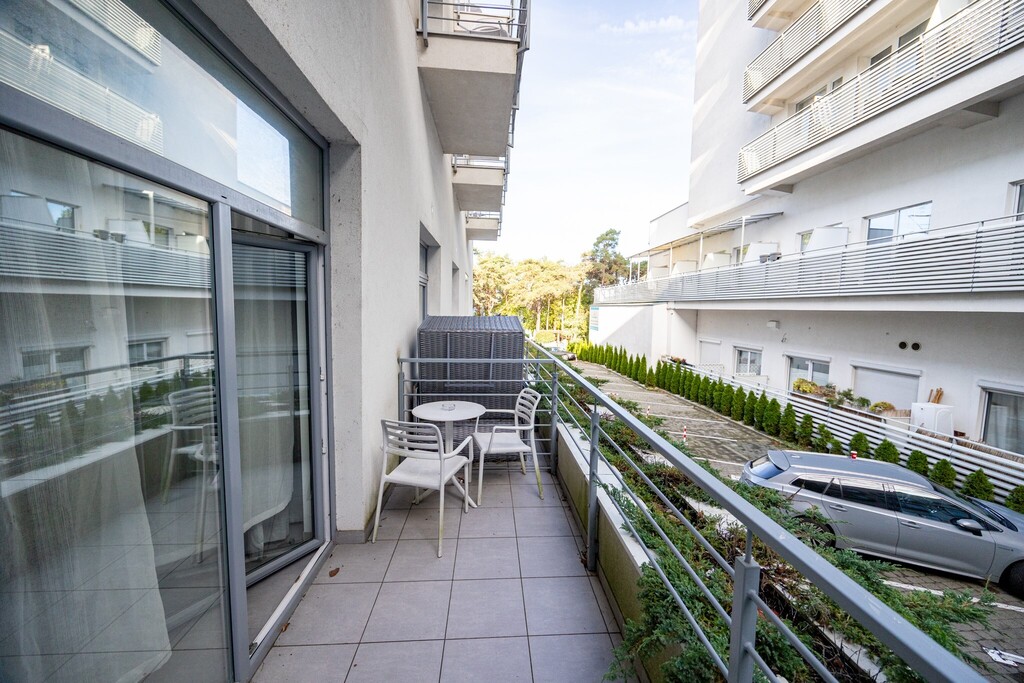 Nowoczesny apartament o powierzchni 22,9 m² położony w apartamentowcu z 2017 roku, zaledwie 100 metrów od plaży i 150 metrów od wejścia do lasu.