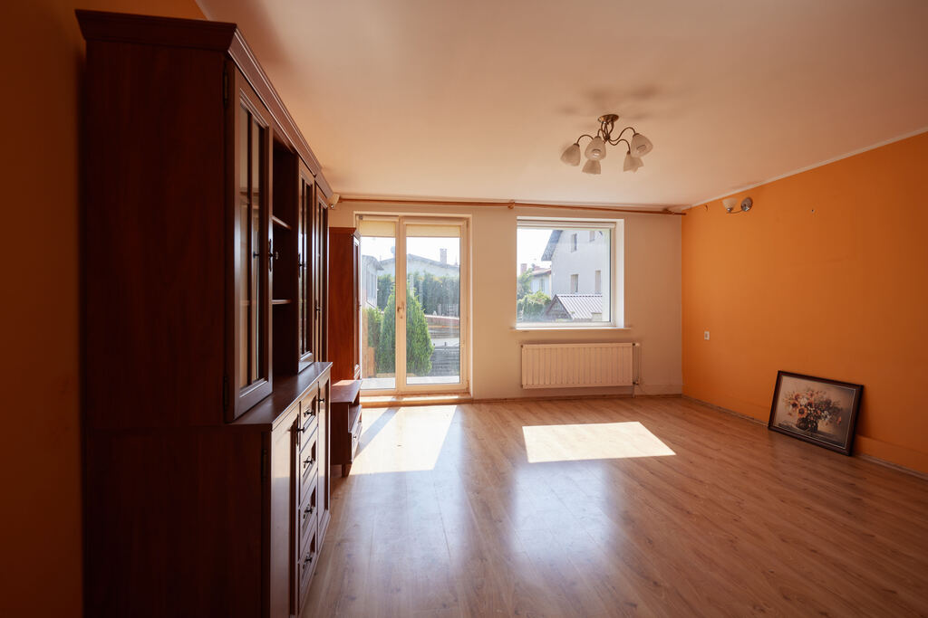 Budynek wyposażony jest w dwa niezależne systemy ogrzewania gazowego – osobne piece obsługują przyziemie z parterem oraz piętro. Dach płaski, stan techniczny nieruchomości – dobry, do remontu lub modernizacji według własnych potrzeb.