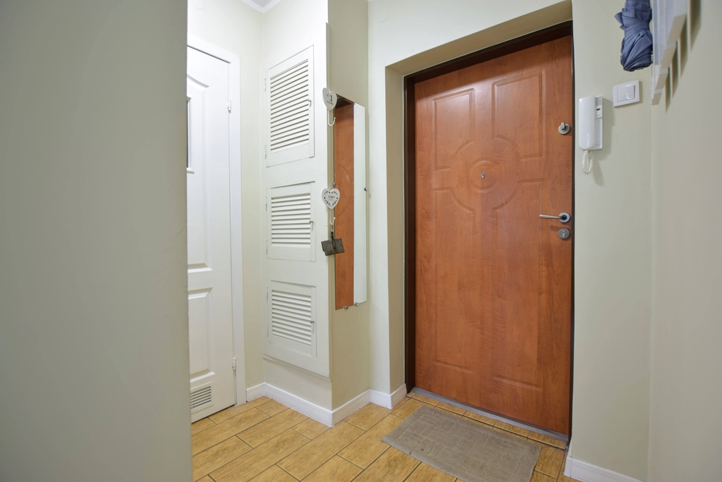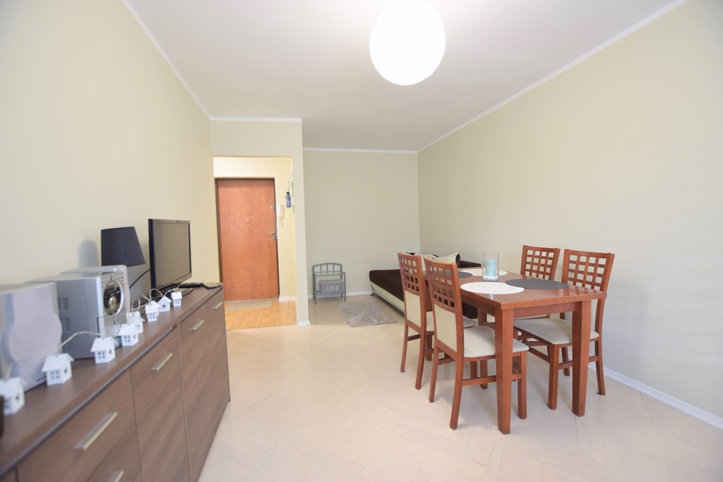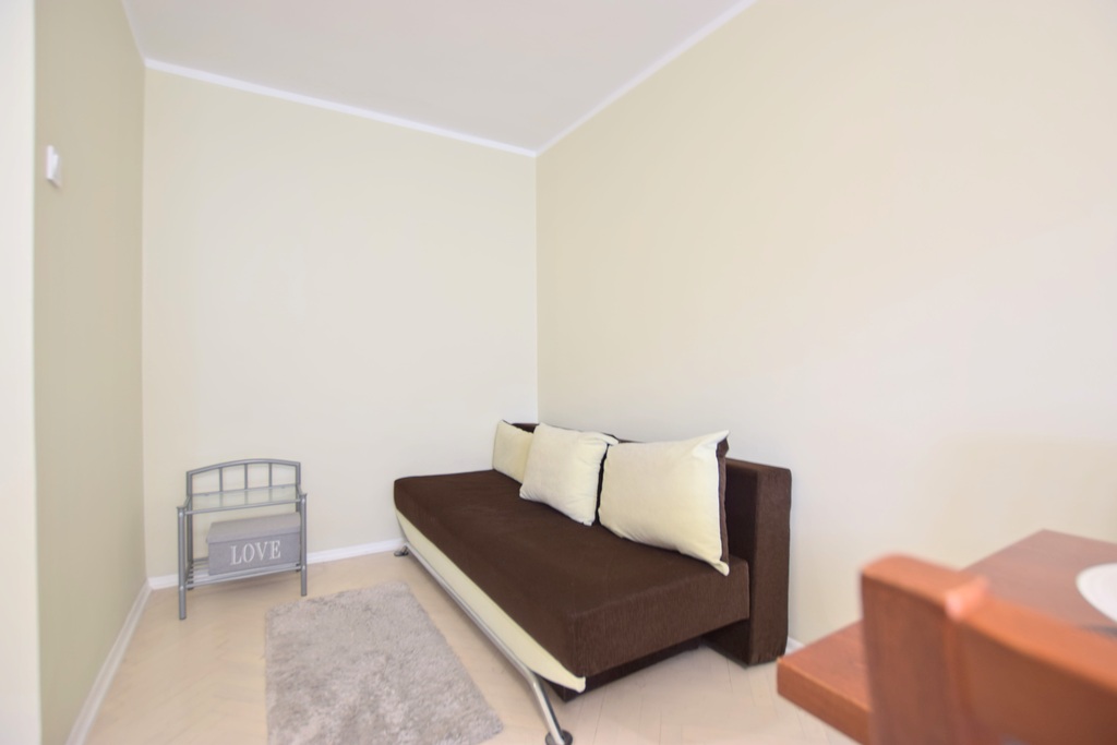 Dwupokojowe mieszkanie położone w bocznej ulicy blisko Bramy Portowej.