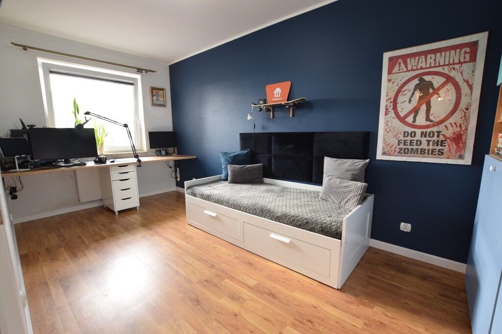 - 2 duże, dobrze ustawne pokoje sypialne;