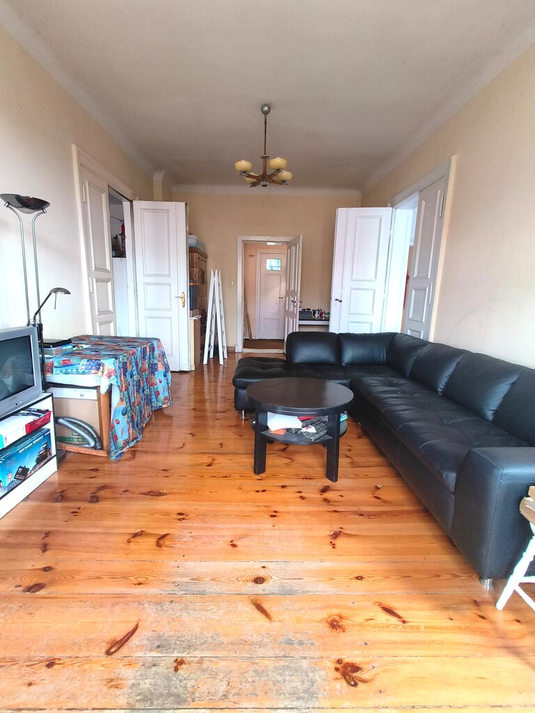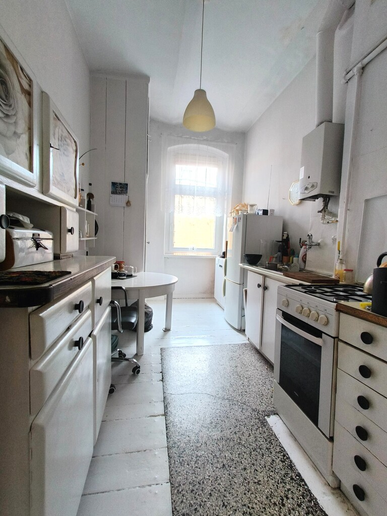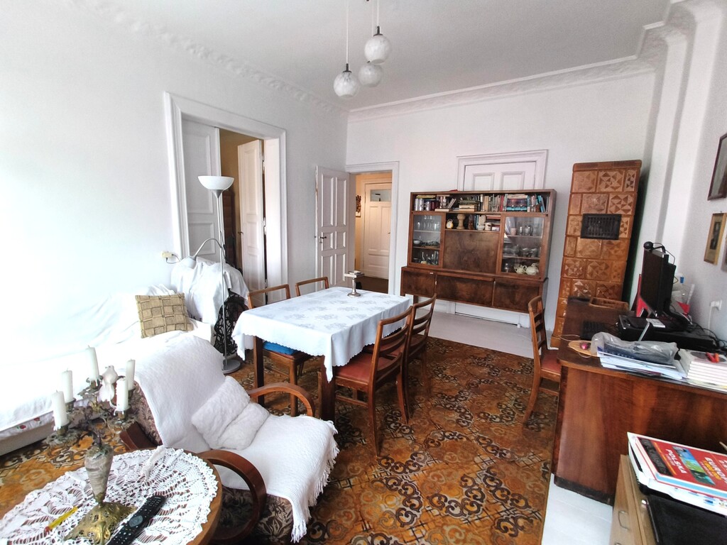 Opis nieruchomości Mieszkanie ma 117 m² i znajduje się na trzecim piętrze zadbanej kamienicy z początku XX wieku. Budynek jest w dobrym stanie technicznym, z wyremontowaną klatką schodową i czystymi, szerokimi ciągami komunikacyjnymi.