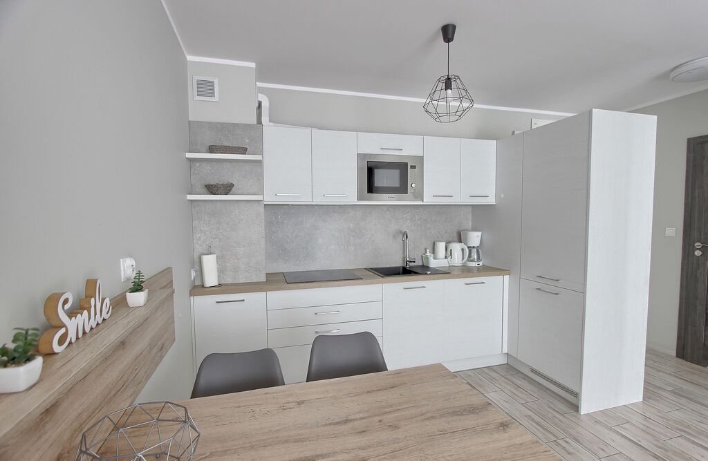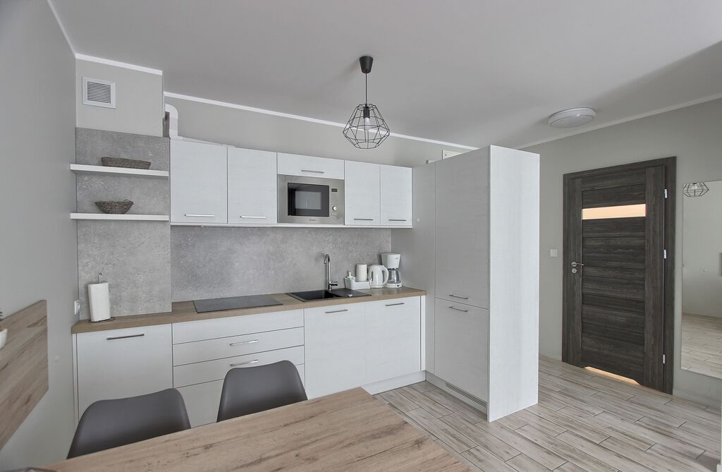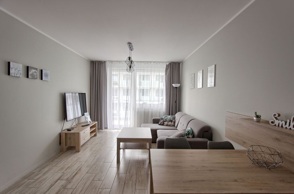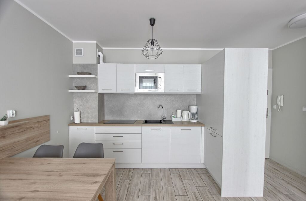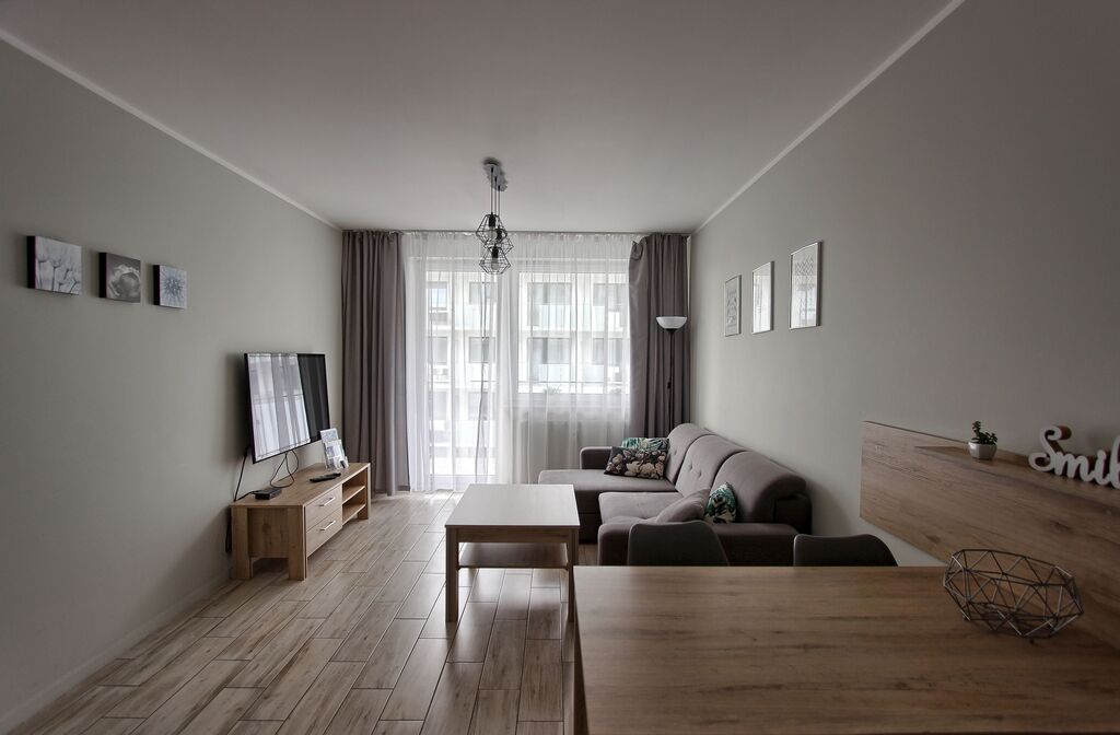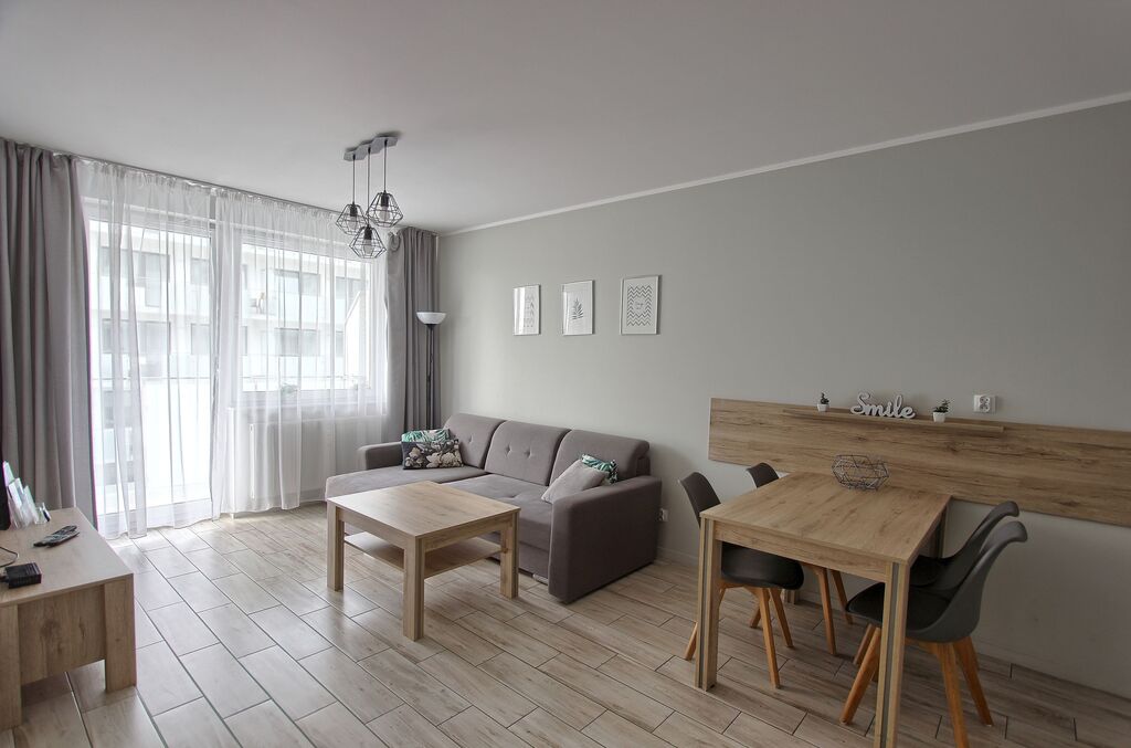Apartament umeblowany, ładnie i wygodnie urządzony. Powierzchnia to prawie 38 m2. Składa się z salonu z rozkładaną kanapą, w pełni wyposażonego aneksu kuchennego oraz sypialni z łożem małżeńskim i łazienki z prysznicem. Dodatkowym atutem jest taras na który można wyjść z sypialni, jak i z salonu. W budynku znajduje się siłownia, rowerownia, a na dachu taras z leżakami. Teren obiektu jest ogrodzony. Budynek wybudowany przez solidnego kołobrzeskiego dewelopera, dobrze zarządzany. Koszty utrzymania to około 600 zł. Ogrzewanie i ciepła woda z sieci miejskiej.