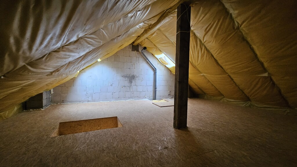 Wylewka cementowa gr 6 cm izolowana styropianem systemowym, na parterze  15 cm, na poddaszu 5 cm