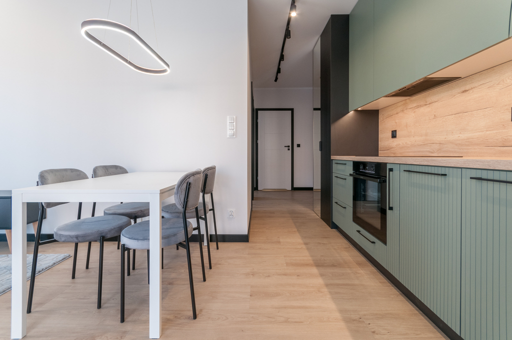 Mieszkanie zostało wykończone pod klucz, czyli wyposażone jest m.in. w :