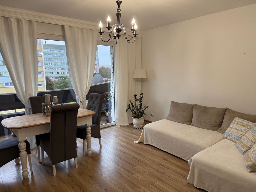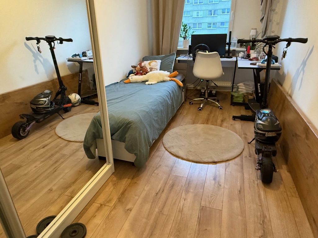 Mieszkanie położone jest na trzecim piętrze czteropiętrowego bloku, mieszkanie składa się z pokoju dziennego i dwóch sypialni. Podczas remontu została przebudowana kuchnia i kosztem wc została powiększona dzięki czemu udało się uzyskać miejsce na jadalnię.