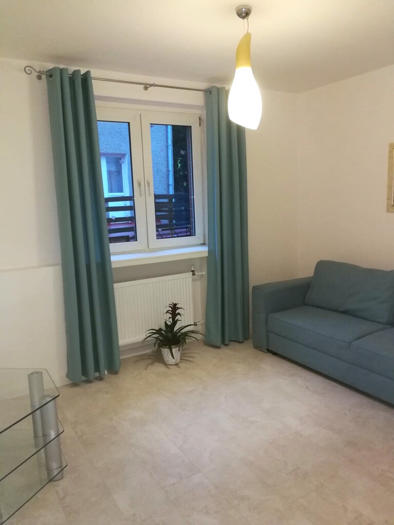 Drugie mieszkanie znajduje się na pierwszym piętrze i składa się z dużego salonu w wyjściem na taras, sypialni, dużej oddzielnej kuchni, łazienki z toaletą i kabiną prysznicową oraz przedpokoju. Standard mieszkania : bardzo zadbane, ewentualnie do odświeżenia.