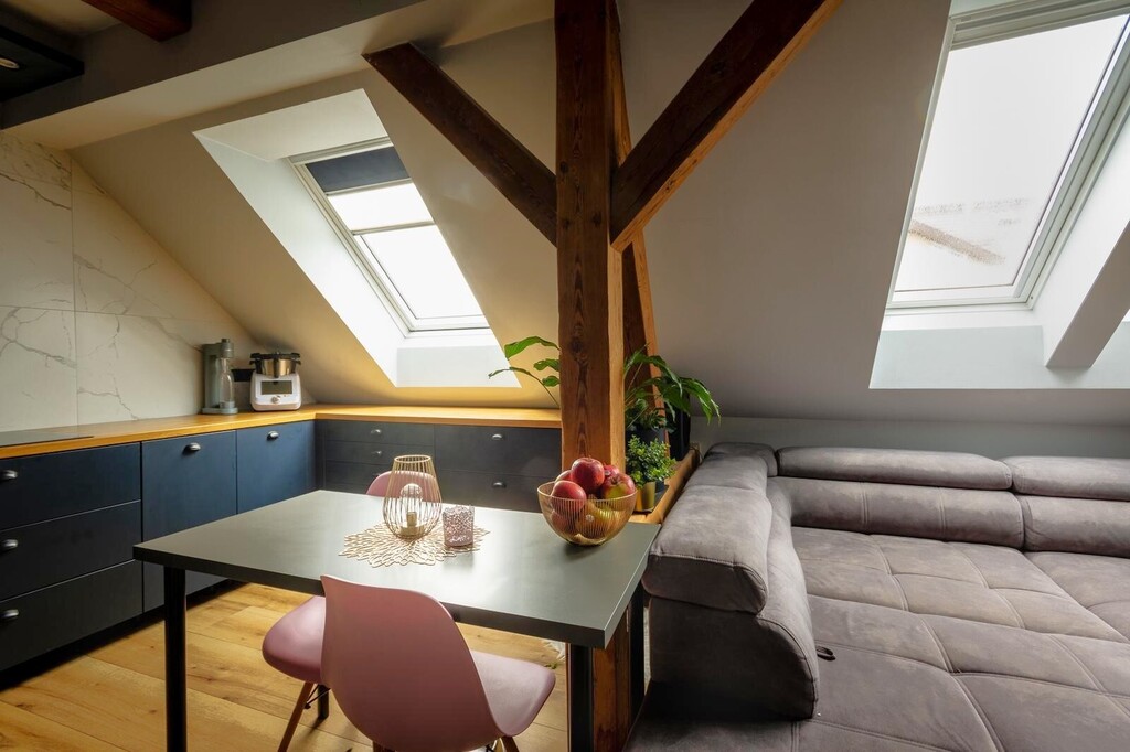 Poleca się do zakupu niesamowicie klimatyczna adaptacja poddasza w sercu Niebuszewa.