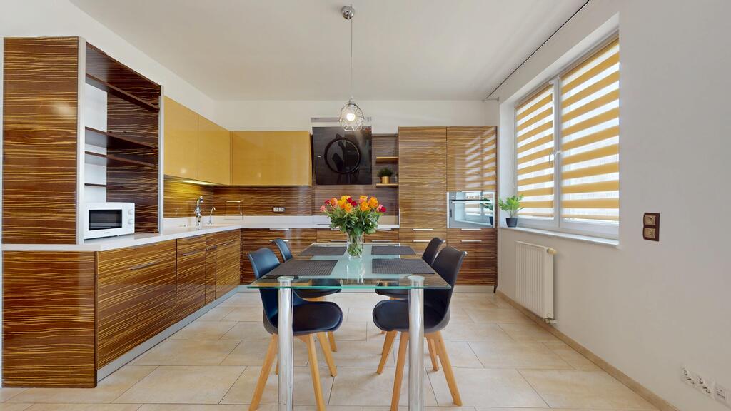 - salon z dużą otwartą kuchnią (26 m2) i wyjściem na balkon
