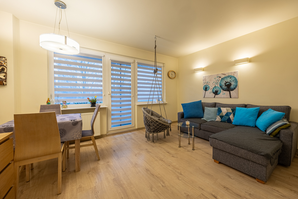 południowy wschód (salon i pokój) oraz północny zachód (kuchnia i sypialnia). Ogrzewanie i woda z sieci miejskiej. Czynsz do zarządcy na poziomie ok. 800 zł/ miesięcznie. Dostawca mediów ORANGE ze światłowodem