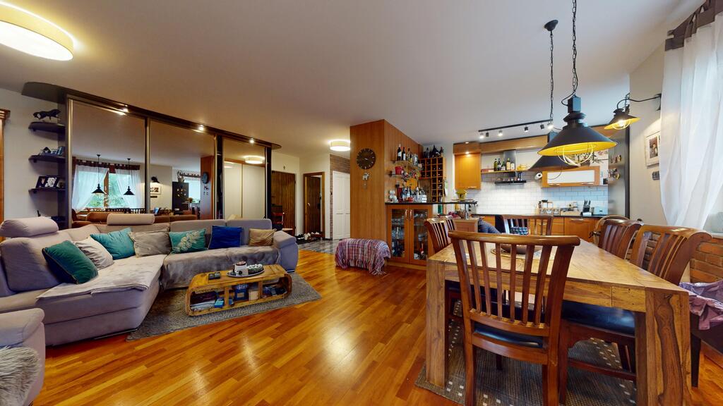 Apartament sprzedawany jest przez pierwszych właścicieli którzy wykończyli go dla siebie przy użyciu naturalnych materiałów: kamień, drewno, cegła. Ponadto zastosowano: ogrzewanie podłogowe w całym mieszkaniu (po za sypialnią), rolety zewnętrzne i żaluzje wewnętrzne w oknach, drzwi antywłamaniowe, 4 szafy w zabudowie, kamienny blat w kuchni itp.