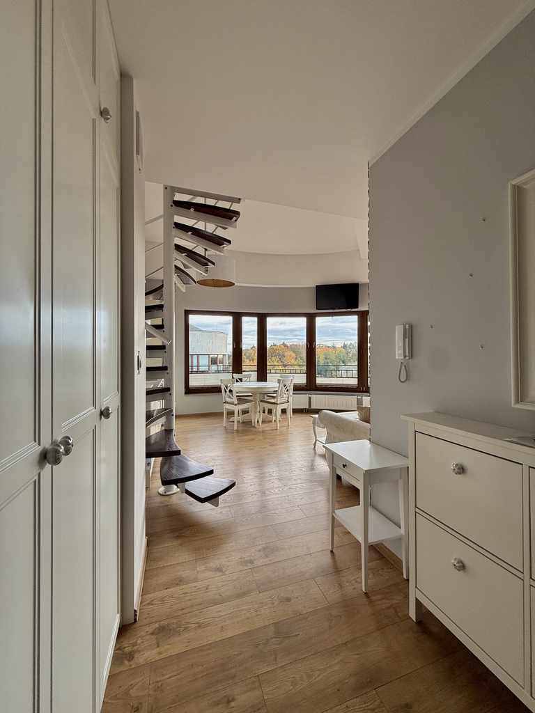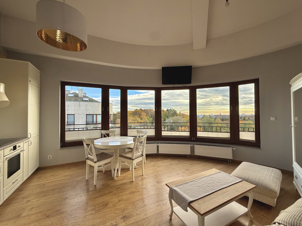 Na wynajem wyjątkowe, jasne 3 pokojowe mieszkanie z antresolą, położone w spokojnej i zielonej okolicy Park Ostrowska. Lokal o powierzchni całkowitej 68,32 m² (użytkowej 65,44 m²) zachwyca przestrzenią, wysokimi sufitami i dużymi oknami z panoramicznym widokiem na zieleń i miasto.