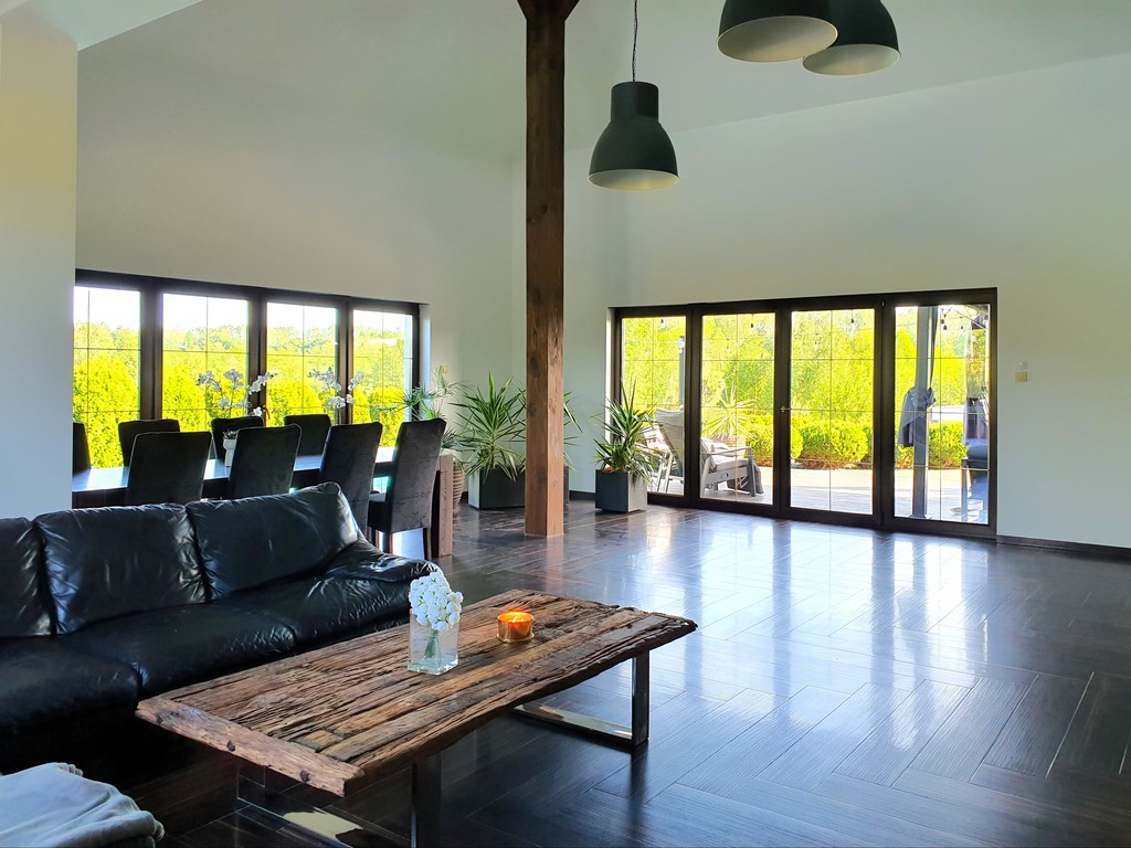 Wyjątkowo przestronny salon z jadalnią, duża kuchnia, taras i piękny ogród to nie jedyne atuty tej nieruchomości. Dom posiada również saunę i basen – idealne połącznie umożliwiające relaks i odpoczynek