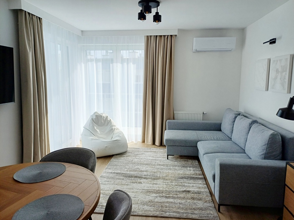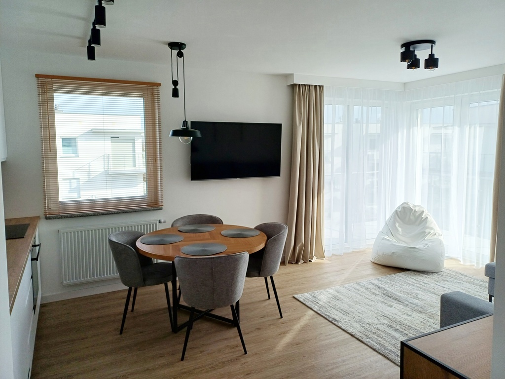 Na wynajem komfortowe nowe, w pełni wyposażone mieszkanie o powierzchni 41 m² z przestronnym balkonem 12 m², położone w spokojnej, uzdrowiskowej dzielnicy w Kołobrzegu.