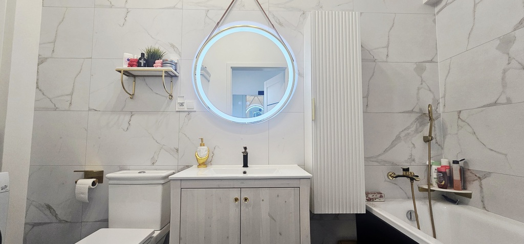 Na powierzchnię 36,68m2 składa się pokój z aneksem kuchennym (oryginalnie z wydzieloną sypialnią- istnieje możliwość przywrócenia stanu pierwotnego), przedpokój, łazienka z WC. Mieszkanie urządzone, w pełni gotowe do zamieszkania.
