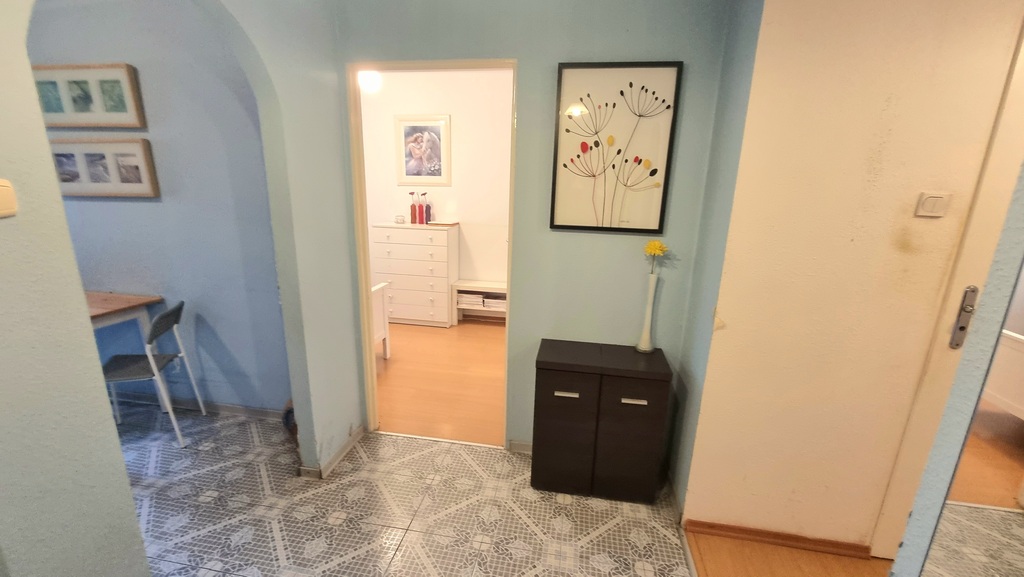 • Przedpokój: Funkcjonalny, wykończony terakotą.