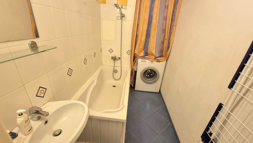 • Łazienka: Wykończona w eleganckiej glazurze i terakocie, z wygodną wanną oraz pralką marki Bosch w cenie.