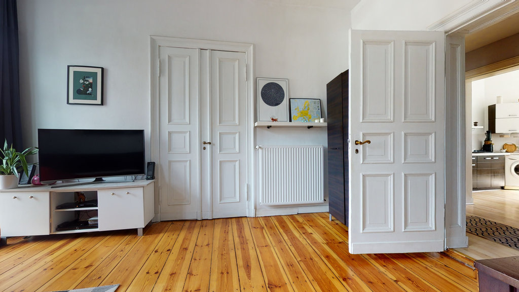 Niezwykle klimatyczne i funkcjonalne mieszkanie o powierzchni 99,24 m2, usytuowane na pierwszym piętrze poniemieckiej kamienicy w centrum Szczecina.