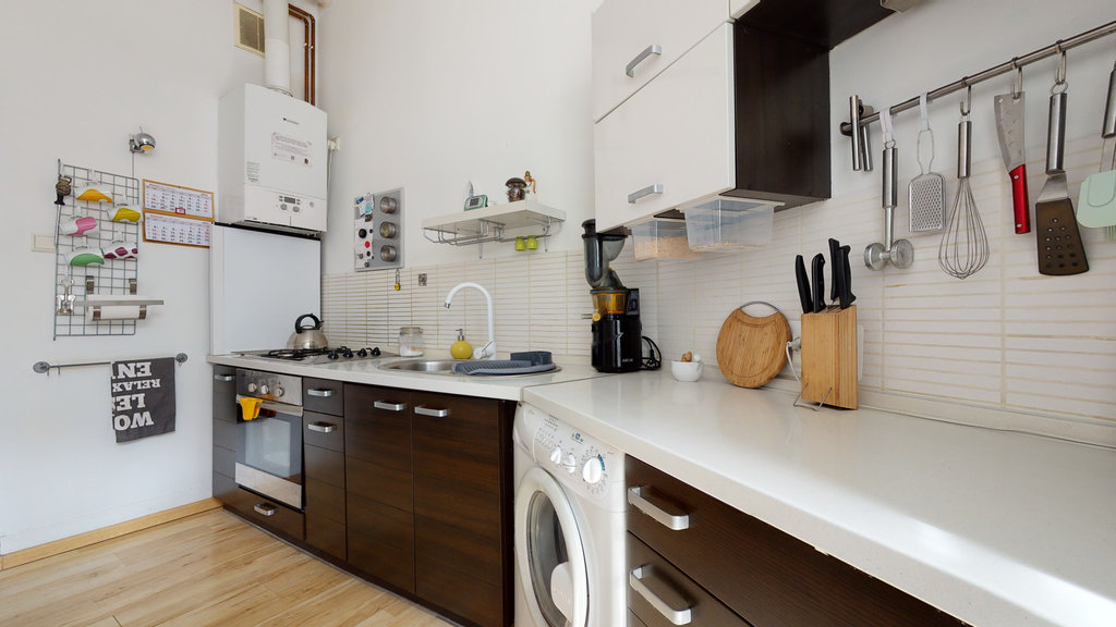 Mieszkanie jest idealne dla ludzi aktywnych, lubiących miejskie atrakcje oraz sport, ale też ceniących sobie spokój i prywatność. Co ważne, w lokalu poniżej znajdują się biura.