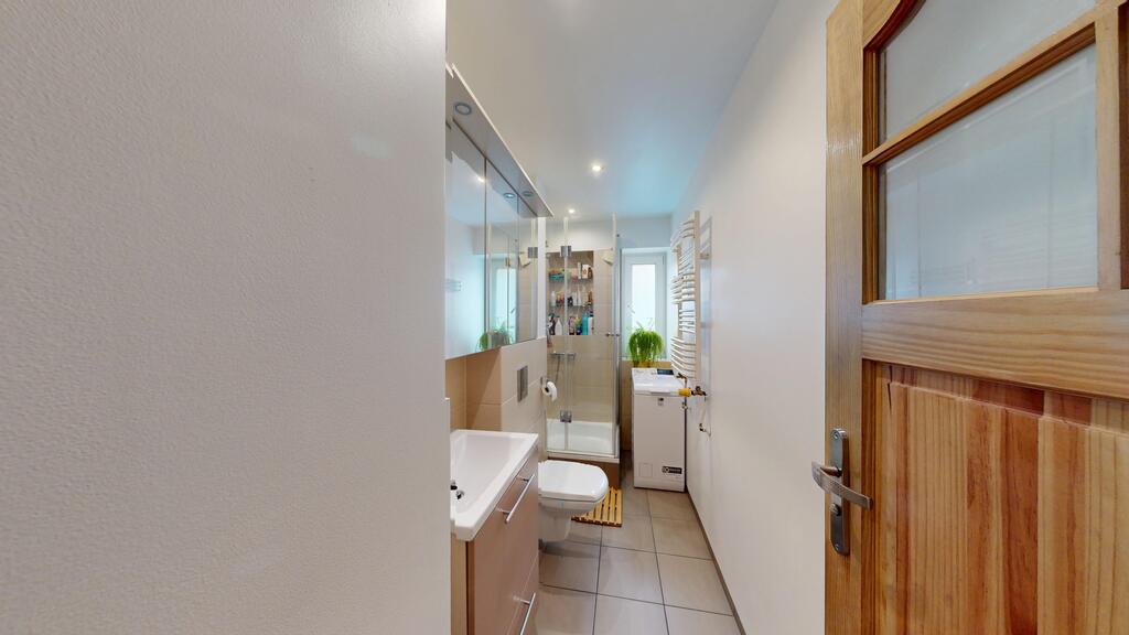 - łazienka razem z WC, wyposażona z kabinę prysznicową, z oknem,