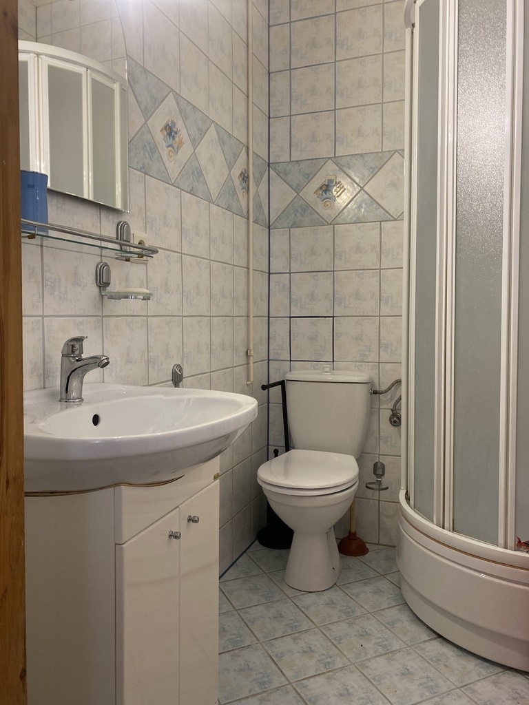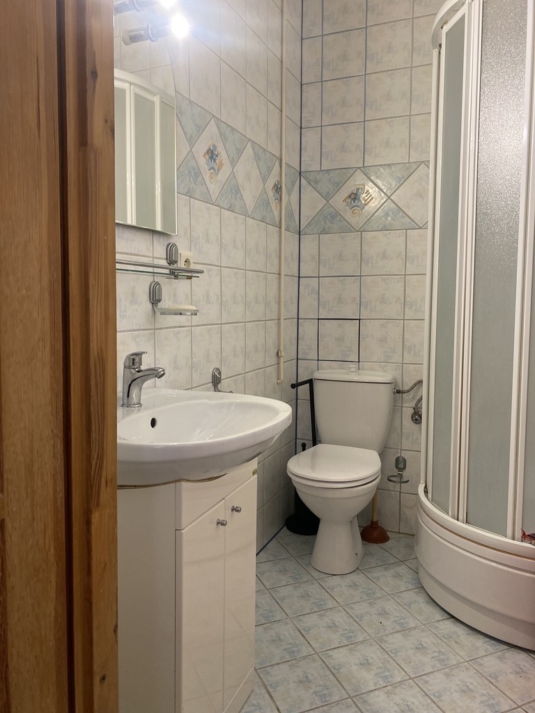 - łazienka z kabiną prysznicową w glazurze i terakocie