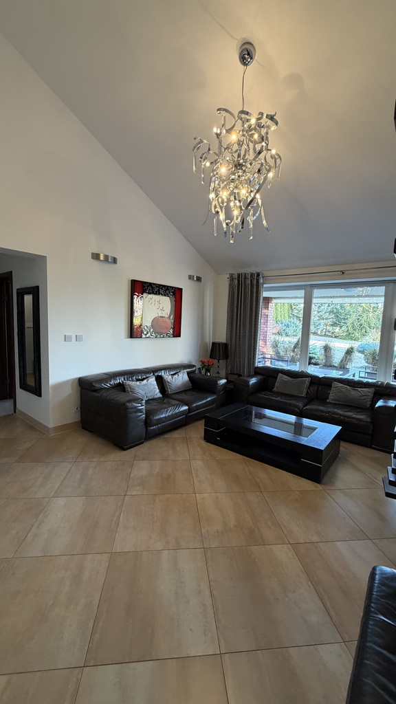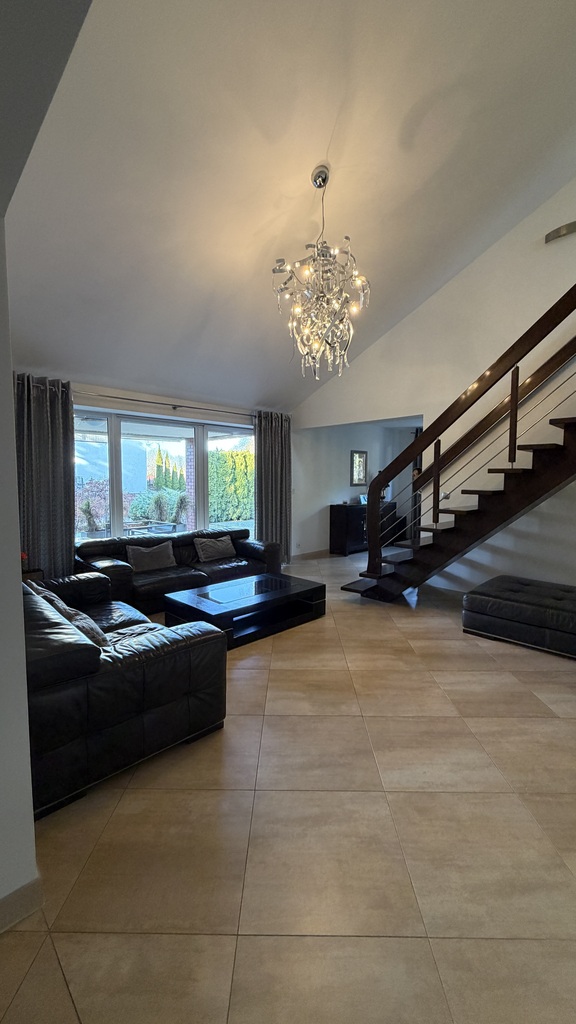 Solidny dom o powierzchni ok. 160 m² (rok budowy ok. 1990), wykończony materiałami wysokiej klasy. Mimo upływu lat, wnętrza zachwycają jakością i przestrzenią.