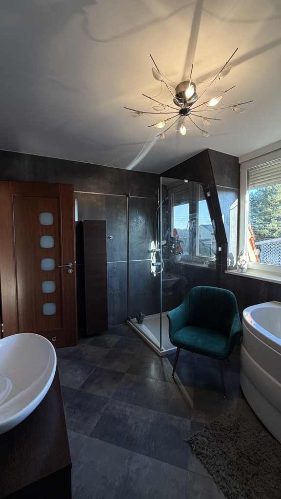 * Łazienki: 2 duże łazienki (w tym pokój kąpielowy z wanną narożną i hydromasażem).