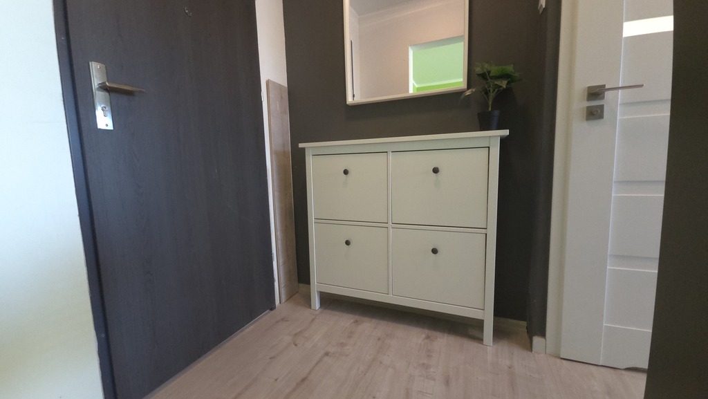• Korytarz z praktyczną szafką na buty i szafą na odzież.