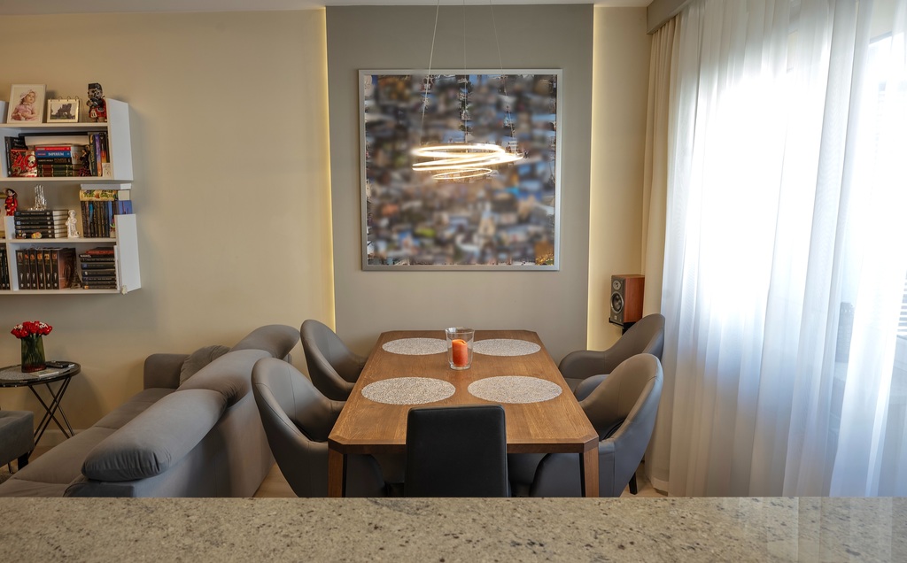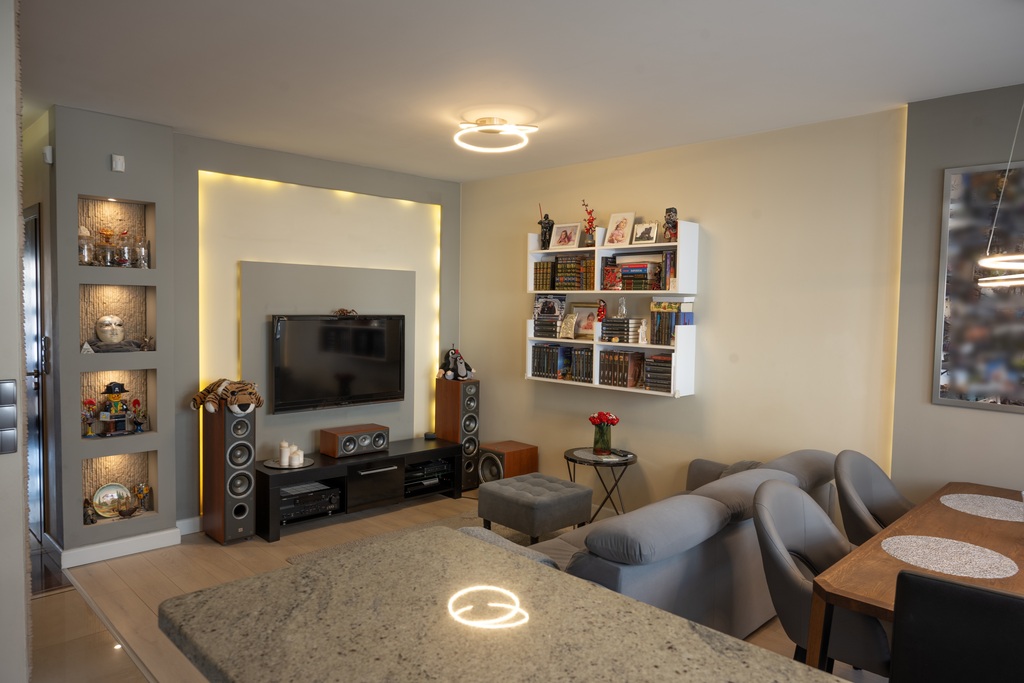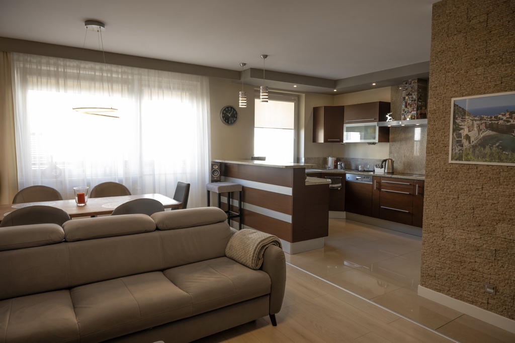 Mieszkanie zostało wykonane we współpracy z architektem wnętrz, dzięki czemu każdy metr kwadratowy jest skrupulatnie przemyślany.