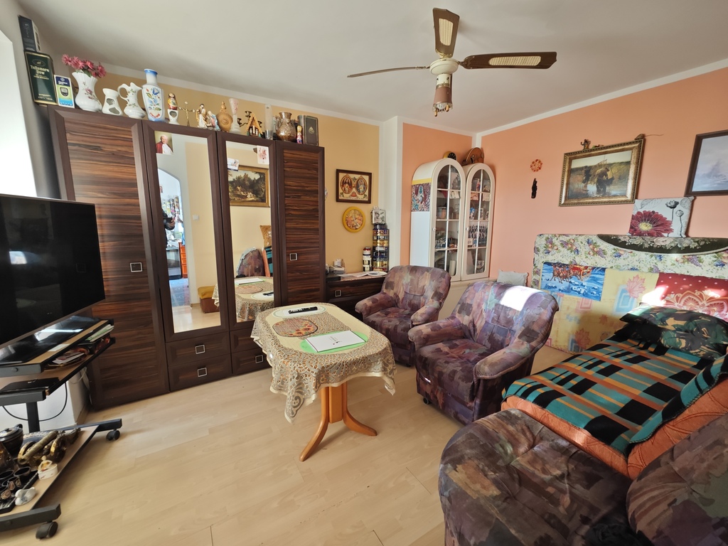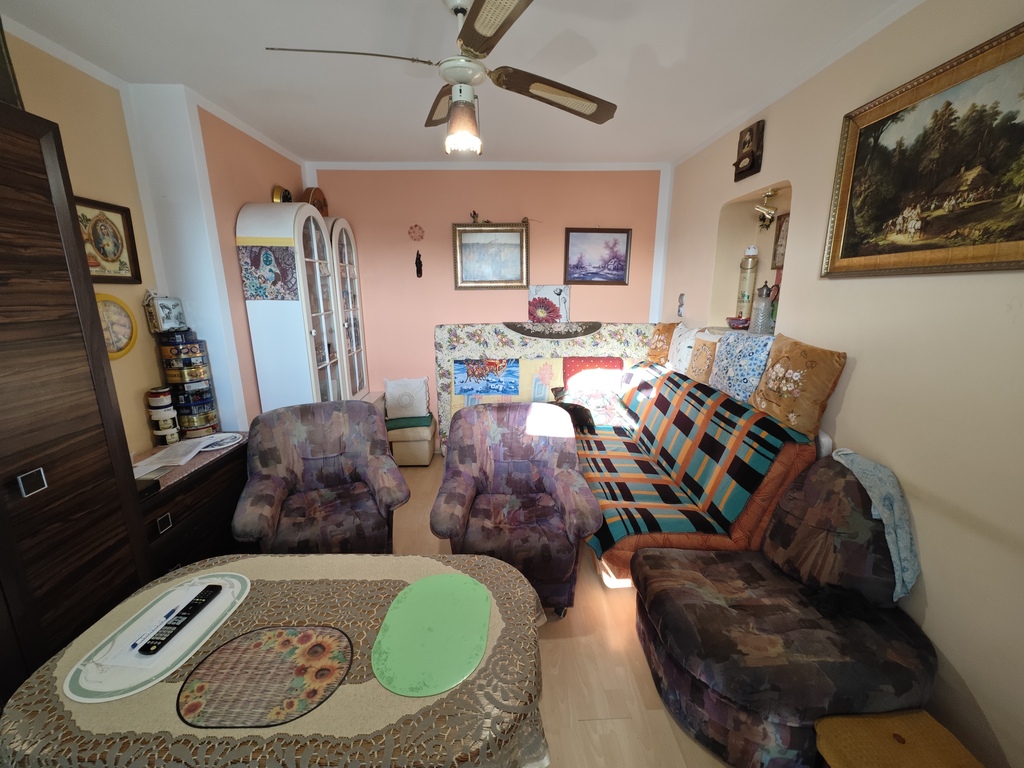Samo mieszkanie składa się z dużego pokoju, osobnej kuchni z oknem, łazienki z toaletą oraz przedpokoju. Zarówno pokój jak i kuchnia posiadają dodatkową powierzchnię w postaci wykuszy, które kiedyś były balkonami (powierzchnie dodatkowo docieplone). W pokoju panele na podłodze, ściany i sufit gładzone i malowane. W kuchni i przedpokoju jednolite kafle na podłodze. Dodatkowo w kuchni umeblowanie starszego typu. W łazience glazura i terakota starszego typu plus mała wanna, muszla i pralka.
