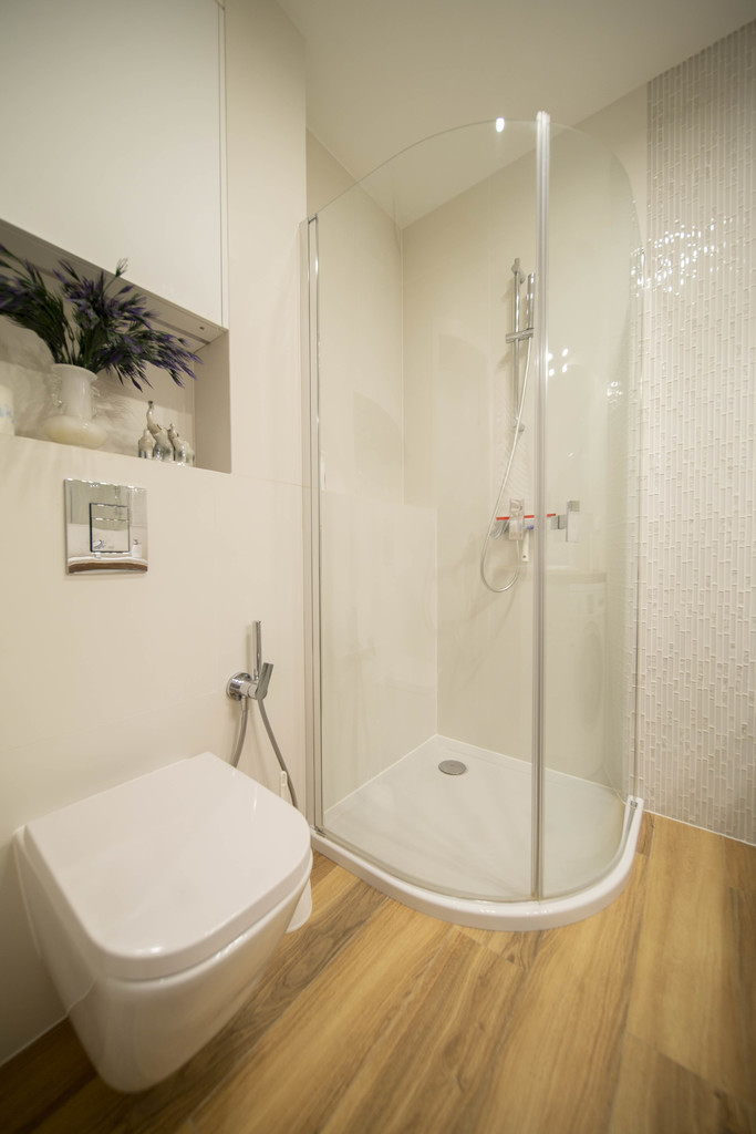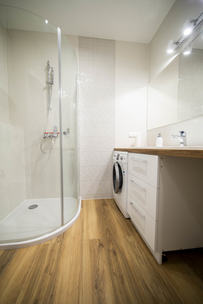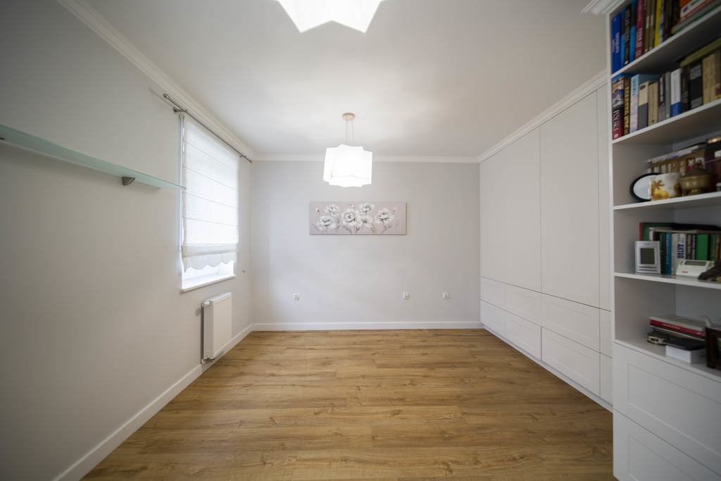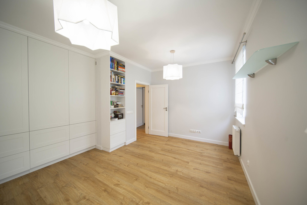 - Duży przedpokój z szafami w zabudowie, które pełnią funkcję garderoby