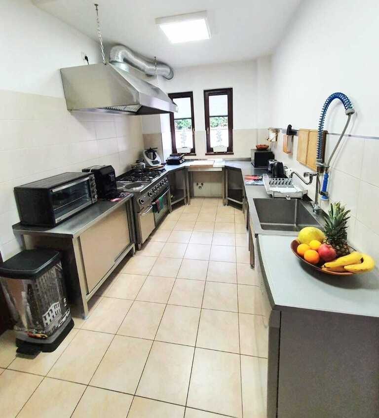 Budynek przystosowany do prowadzenia działalności opiekuńczych oraz hotelarskich (zgodnych z przeznaczeniem, z pełną dokumentacją), wyposażony m.in. w dużą jadalnię o powierzchni 45 m², kompletnie wyposażoną kuchnię przemysłową, pomieszczenia do przechowywania i przygotowywania żywności, pomieszczenie gospodarcze, lodówki, zmywarkę, szafki, łącznie 9 sypialni z łazienkami oraz 2. dodatkowe pokoje/biura. Wszystkie drzwi, korytarze i pomieszczenia są przystosowane do potrzeb osób poruszających się na wózkach inwalidzkich. Zgodnie z pierwotnym projektem, budynek może komfortowo pomieścić około 21 osób. W budynku znajduje się także winda.