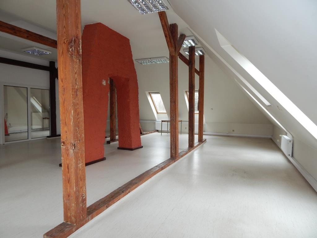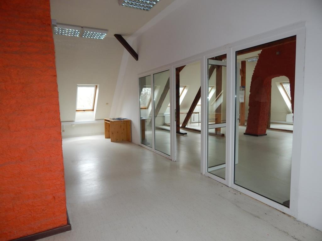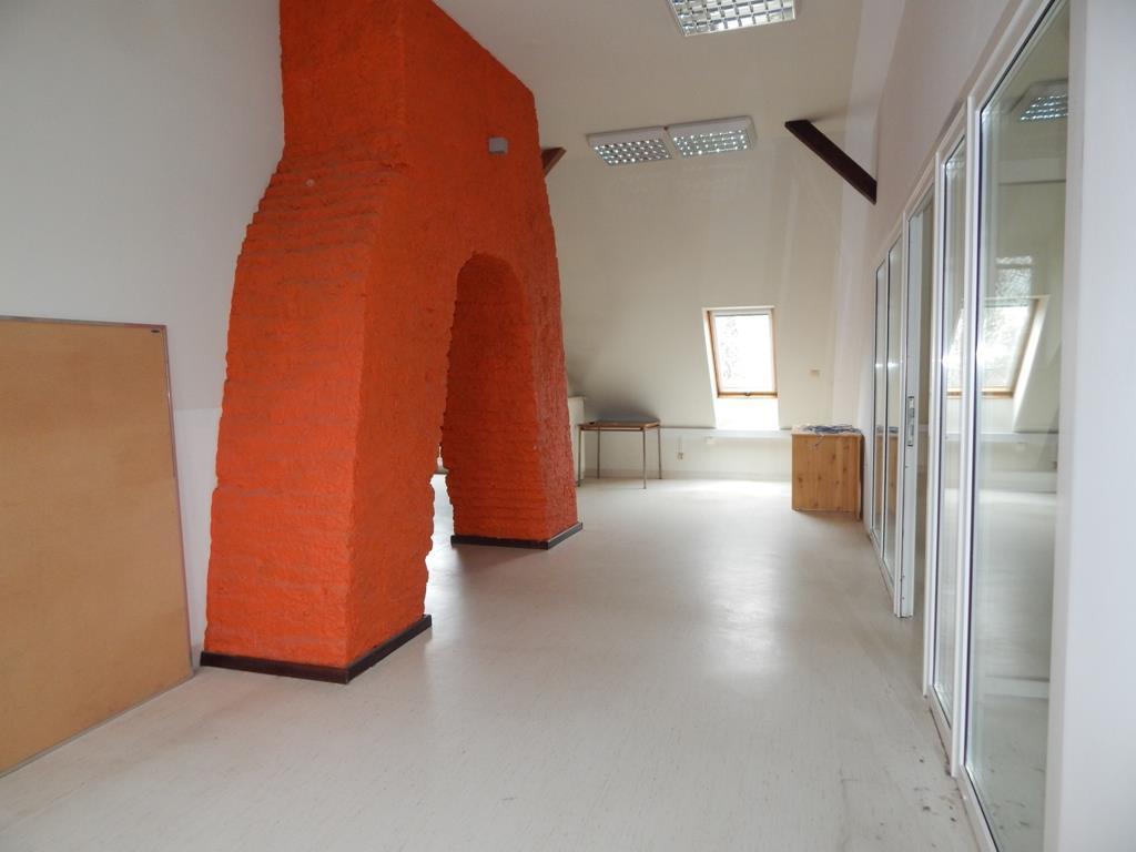 Oferowaną powierzchnię 170 m2 stanowi duża sala typu open space podzielona na dwie powierzchnie (większa ma ok. 100 m2) oraz dwa mniejsze pomieszczenia – gabinet i sekretariat .