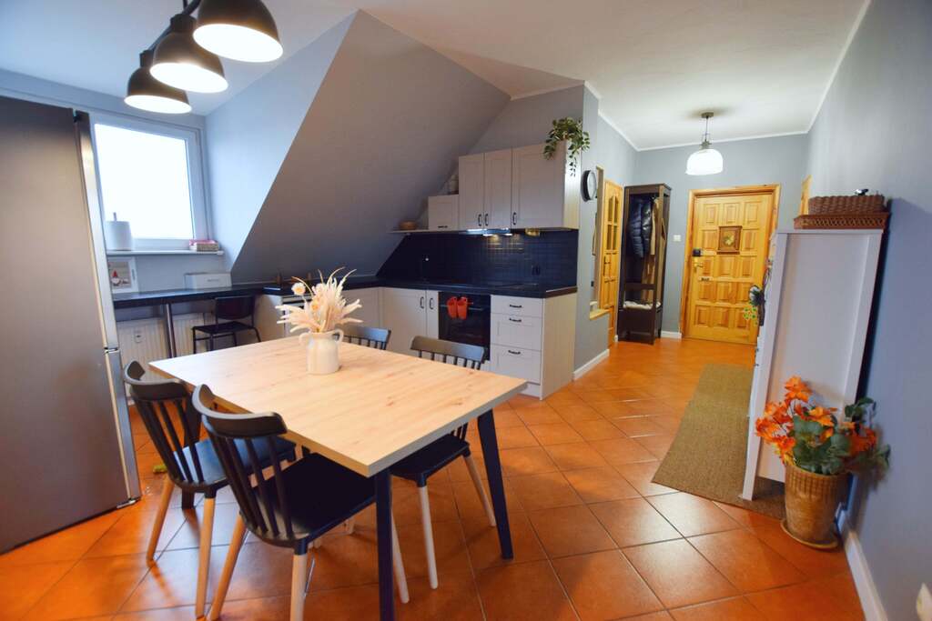 Nieruchomość znajduje się w kameralnym, 3-piętrowym budynku z lat 90., w którym na każdym piętrze mieszczą się jedynie trzy mieszkania. Lokal usytuowany jest na ostatnim, trzecim piętrze, co gwarantuje ciszę i prywatność – brak sąsiadów nad głową to duży komfort na co dzień.