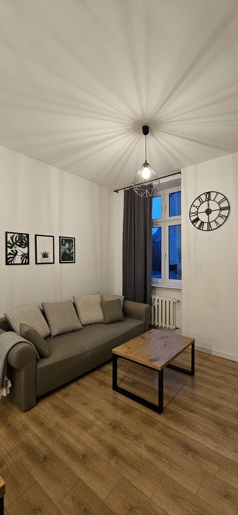 Przedmiotem oferty jest mieszkanie 2 pokojowe, położone na 1 piętrze odnowionej kamienicy na ul. Koński Kierat w Szczecinie. Zadbana klatka, cicha część Starego Miasta. Blisko restauracje, banki, sklepy, komunikacja miejska, PUM. Salon z aneksem kuchennym, w pełni wyposażony.  Rozkładana sofa, meble w zabudowie kuchennej, sprzęt AGD wysokiej klasy. Sypialnia oddzielna, z oknem na salon. Łazienka z natryskiem, pralka, wc. Przestronny korytarz. Na podłogach wysokiej jakości panele drewniane; ściany malowane w jasnych barwach. Opłaty miesięczne to czynsz ok. 806 zł, prąd. W cenie internet. Kaucja 3500 zł. Przy podpisywaniu umowy najmu, wymagana jednorazowa opłata do biura nieruchomości. Wymagany najem okazjonalny, koszt notariusza po stronie właścicieli mieszkania. Oferta nie jest skierowana dla osób ze zwierzętami i palaczy. Brak balkonu.