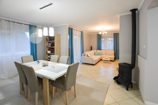 - ogrzewanie elektryczne, na parterze podłogowe, na piętrze kaloryfery