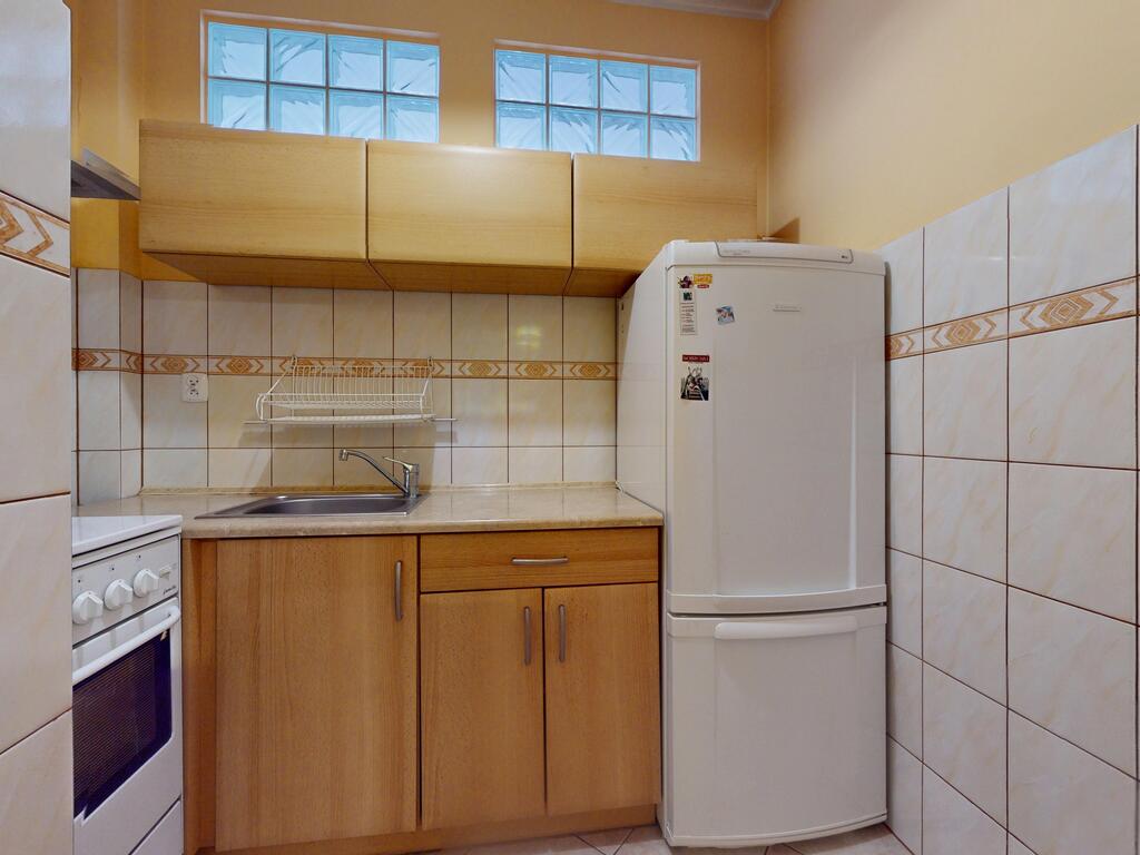 Łazienka w glazurze i terakocie. Kuchnia w zabudowie.