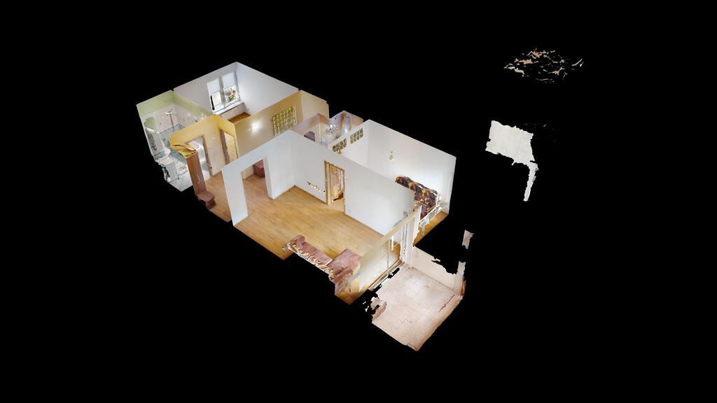 Mieszkanie obecnie składa się z trzech pokoi - jeden z nich powstał z pierwotnej kuchni. Kuchnia została przeniesiona do pomieszczenia po garderobie (w księdze wieczystej lokal widnieje jako dwupokojowy z osobną kuchnią i garderobą).