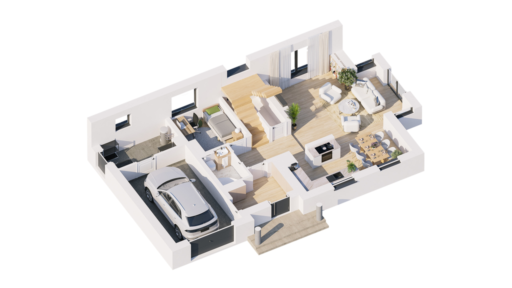Ogród od strony zachodniej będzie dawał dużo naturalnego światła, a funkcjonalny układ domu pozwala na pełne wykorzystanie jego potencjału.