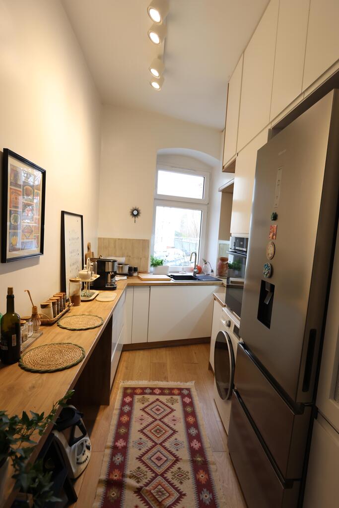 > samodzielną, jasną kuchnię,